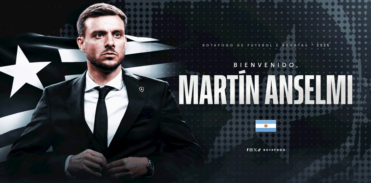 “Anselmi teve passagem marcante pelo Independiente del Valle [Equador], onde conquistou a Copa Sul-americana e a Copa Equador em 2022, se tornando o primeiro técnico do clube a conquistar dois títulos na mesma temporada e um dos mais jovens a vencer um torneio Conmebol. Em 2023, ele repetiu o feito vencendo a Recopa Sul-americana e a Supercopa do Equador. O argentino também comandou o Cruz Azul [México], o Unión La Calera [Chile] e o Porto [Portugal], seu trabalho mais recente”, informa o alvinegro carioca.